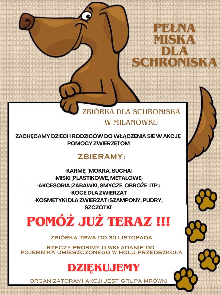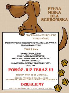 Pojemnik będzie na bieżąco opróżniany - tak, żeby na początku grudnia wszystko trafiło do naszych ,,mniejszych braci" 🙂