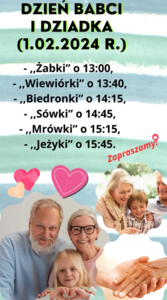Już teraz prosimy, żeby Babcie i Dziadkowie zarezerwowali sobie czas na występ Wnucząt w Przedszkolu w dniu 1.02. (czwartek).