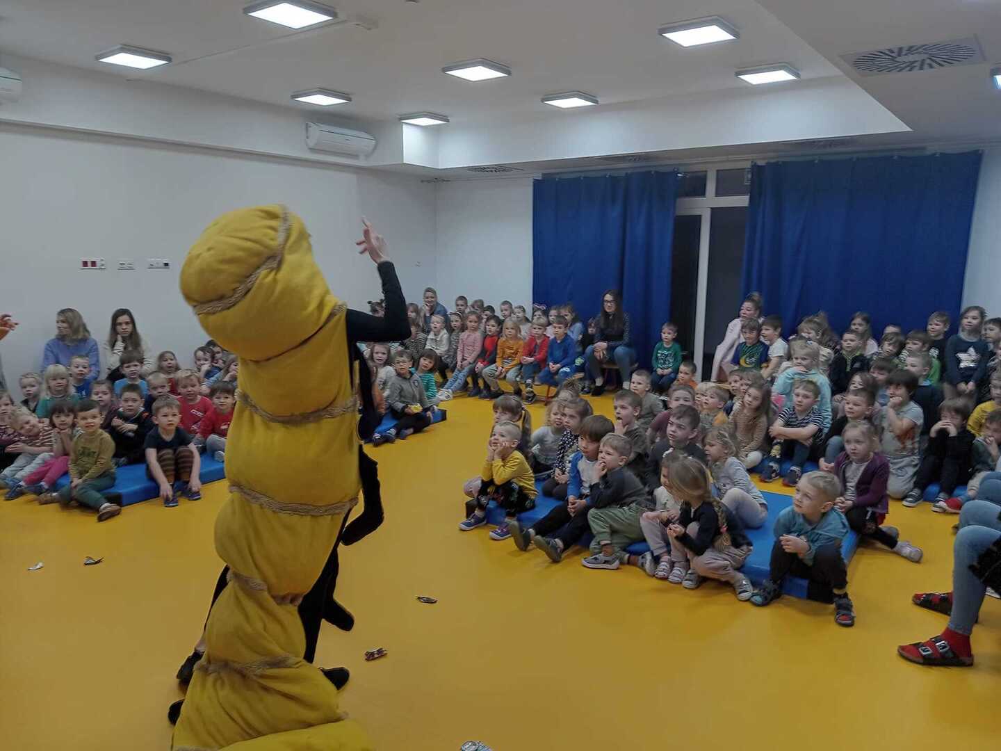 Przedstawienie było pełne humoru, piosenek i zaangażowania dzieci.