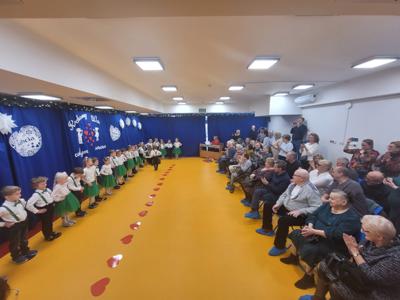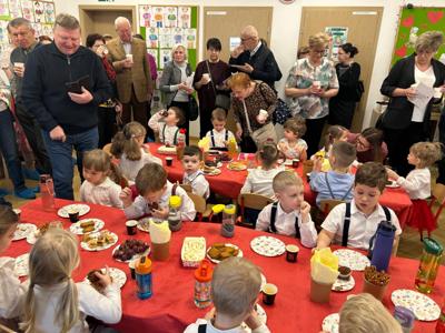 Wczoraj już od rana wyczekiwaliśmy szczególnych Gości - Babć i Dziadków naszych Przedszkolaków! Prawie każda grupa (,,Liski" zrobią to nieco później) pięknie wystąpiła (zaśpiewała, zatańczyła, powiedziała wierszyk) oraz wręczyła prezenty swoim najbliższym. Znalazł się również czas na wspólne zdjęcia oraz poczęstunek zorganizowany z pomocą Rodziców