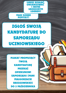 Samorząd Uczniowski zaprasza Zapraszamy uczniów do działania w Samorządzie Uczniowskim. Szczegóły na plakacie Zdjęcia Zobacz również zebranie Rady Rodziców przedszkola Jesienny numer gazetki "Nowinki żółwińskiej rodzinki" 29. września - Dzień Głośnego Czytania Samorząd Uczniowski zaprasza 27 września 2025 Komunikaty Wydrukuj Udostępnij Wyświetlono: 9
