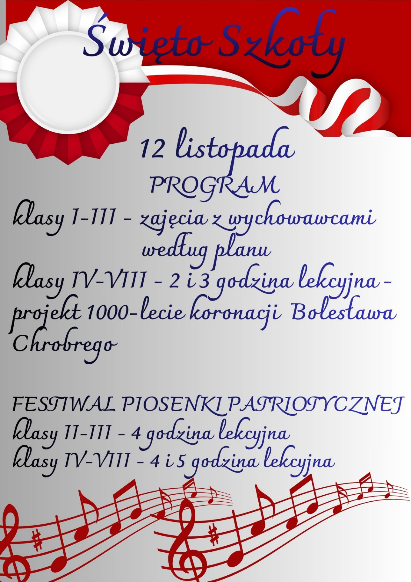Program Święta Szkoły dostępny jest poniżej na plakacie.