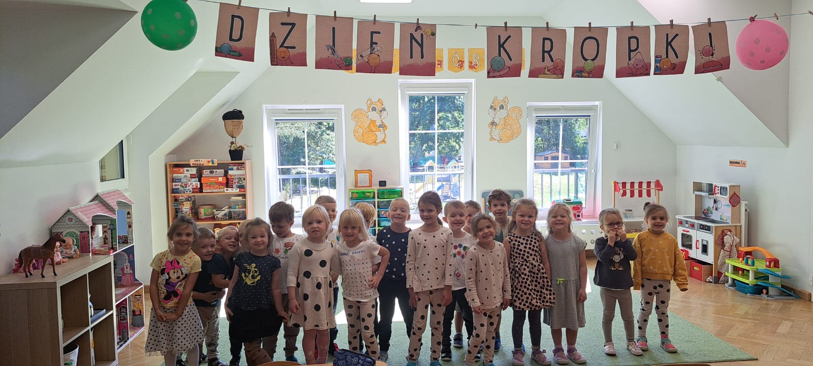 W naszym przedszkolu 15 września obchodziliśmy Międzynarodowy Dzień Kropki – święto kreatywności, odwagi i zabawy. Dzieci brały udział w ciekawych zajęciach plastycznych i ruchowych. Odkrywały swoje talenty oraz uczyły się, że każdy z nas jest wyjątkowy. Nasze sale i prace pełne były kolorowych kropek, a uśmiechy na twarzach dzieci najlepiej pokazały, jak wspaniale spędziliśmy ten dzień. Dostrzegaliśmy kropki tam, gdzie wcześniej nikt na nie nie zwracał uwagi. Okazało się, że kropki towarzyszą nam codziennie: są w kropkach biedronki, na muchomorze, kostce do gry, a nawet czasem na tęczy
