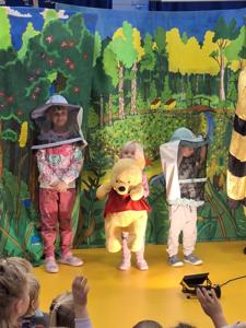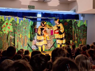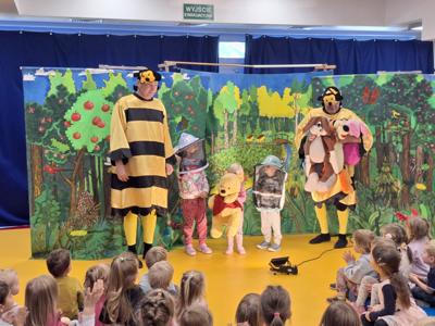 " Koliberek" zaprezentował spektakl pt. ,,Puchatkowe opowieści”, który przedstawił bajkę o tolerancji, empatii i pomocy słabszym.