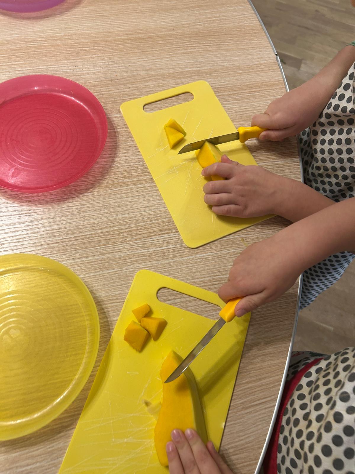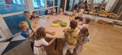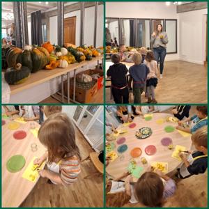 Braliśmy także udział w warsztatach technicznych i kulinarnych, podczas których każde dziecko własnoręcznie zrobiło jesienny lampion oraz przetwory z dyni. Po zajęciach zjedliśmy pyszny posiłek przy ognisku, a na koniec bawiliśmy się na placu zabaw. Wszyscy wrócili do przedszkola zadowoleni i pełni wrażeń.
