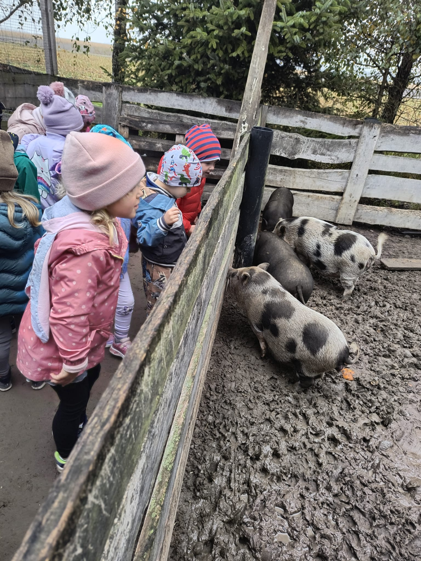 Dnia 9 października dzieci z naszego przedszkola -grupy Wiewiórki, Żabki, Mrówki i Sówki, wybrały się na wycieczkę do Gongolina. Podczas wyjazdu odwiedziliśmy gospodarstwo wiejskie, gdzie mogliśmy zobaczyć wiele zwierząt, takich jak: konie, kozy, owce, kury i króliki.