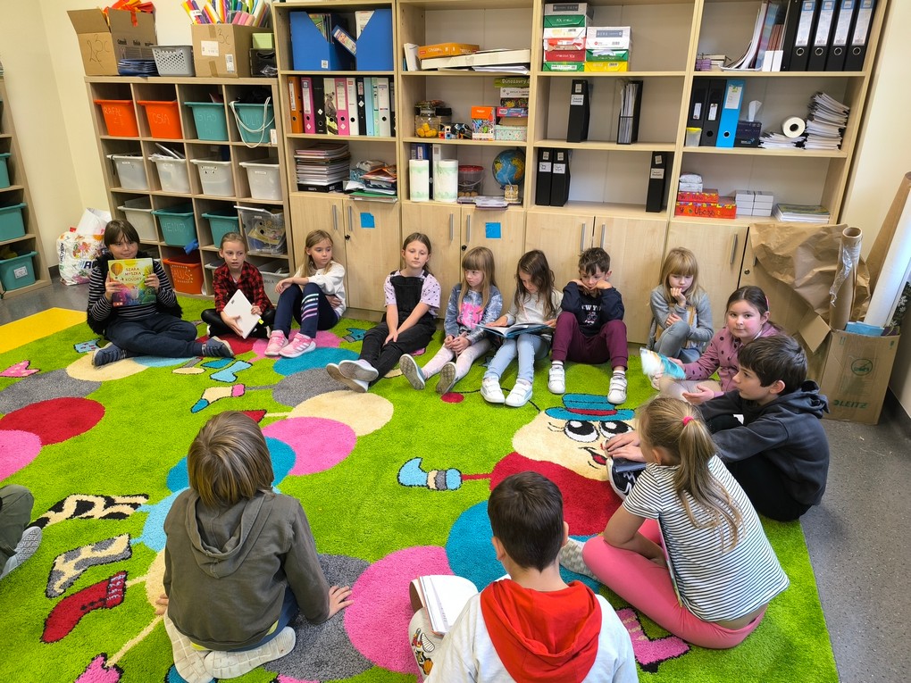 29.09.2025 r. dzieci z klasy 2a i 2c zorganizowały w klasie Dzień Głośnego Czytania. Każdy przyniósł ze sobą swoją ulubiona książkę i zaprezentował fragment, czytając głośno w klasie. W Dzień Głośnego Czytania zachęca się do wspólnego czytania, podkreślając jego korzyści dla rozwoju dziecka, takie jak wzbogacanie słownictwa, pobudzanie wyobraźni, rozwijanie koncentracji.
