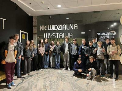 4 listopada klasa 7b odwiedziła w Niewidzialną Wystawę w Warszawie. Celem wizyty było przybliżenie uczniom problemów z codziennym funkcjonowaniem osób niewidzących lub słabowidzących a głównym elementem zwiedzania było poruszanie się w całkowitych ciemnościach w pomieszczeniach imitujących różne pomieszczenia w domach, lesie i na ulicy.
