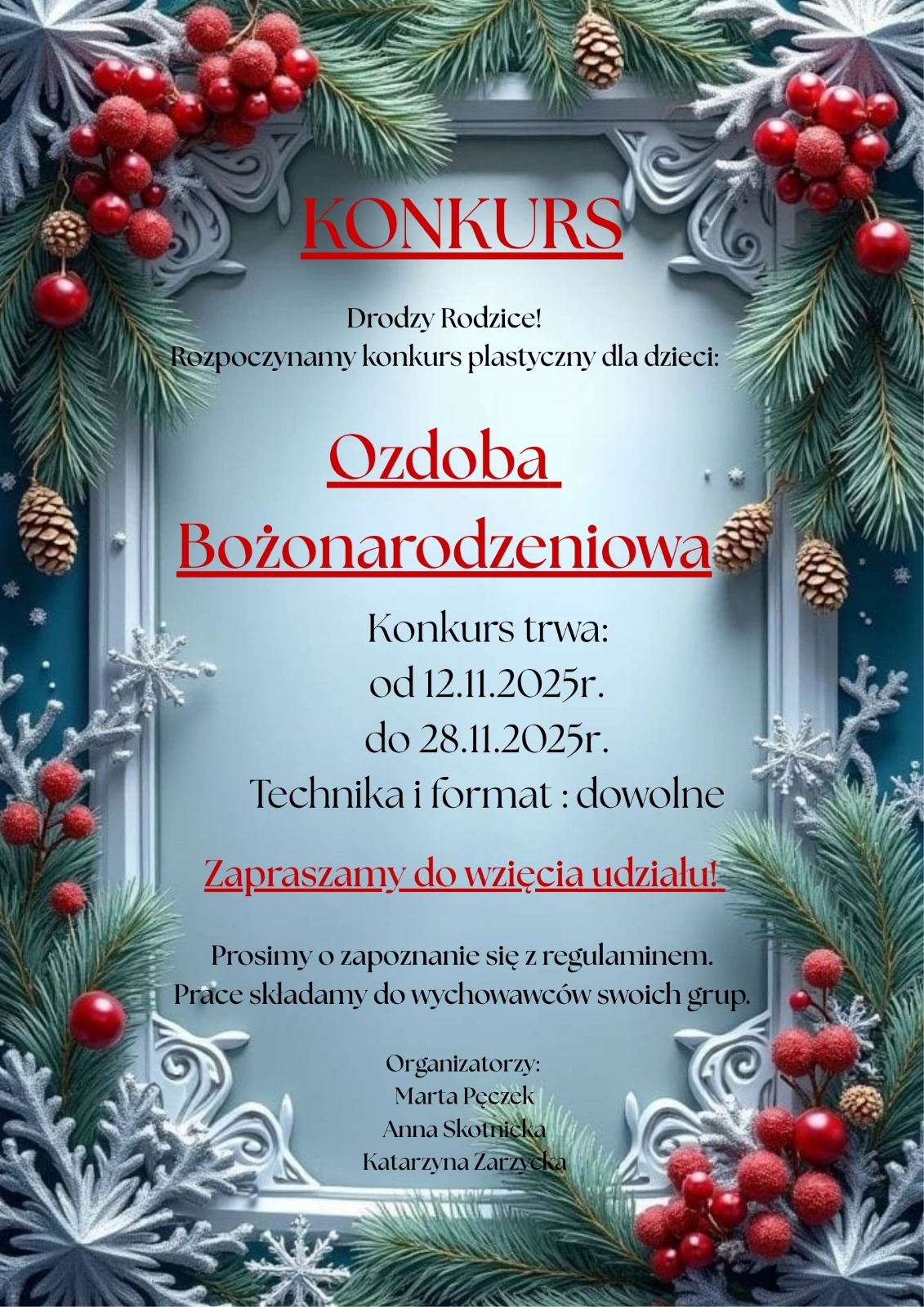 Konkurs plastyczny na ozdobę bożonarodzeniową Zdjęcia Zobacz również Zbiórka na schronisko dla zwierząt w Milanówku 7. edycja akcji "Szkoła z pozytywną uwagą" Święto Szkoły - Festiwal piosenki patriotycznej Konkurs plastyczny na ozdobę bożonarodzeniową Kiermasz świąteczny w Przedszkolu Samorząd Uczniowski zaprasza 23 listopada 2025 Komunikaty Wydrukuj Udostępnij Wyświetlono: 7