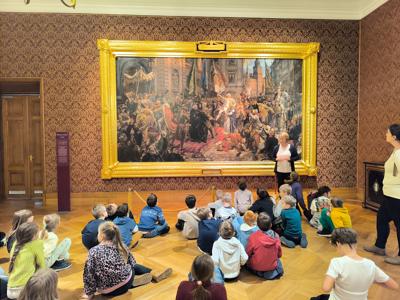 Z okazji Mikołajek dzieci z klasy 2a i 2c wybrały się na wycieczkę do Zamku Królewskiego. Zajęcia w Zamku prowadzone są na różnych poziomach nauczania i dostosowane do wieku uczniów oraz obowiązującej podstawy programowej. Ich kluczowym elementem jest bezpośredni kontakt uczniów z dziełami sztuki związanymi z historią Polski. Uczniowie byli na lekcji: JAKI ZNAK TWÓJ? SYMBOLE NARODOWE