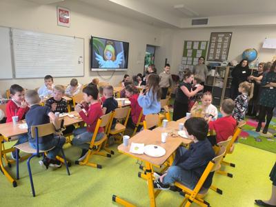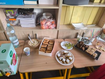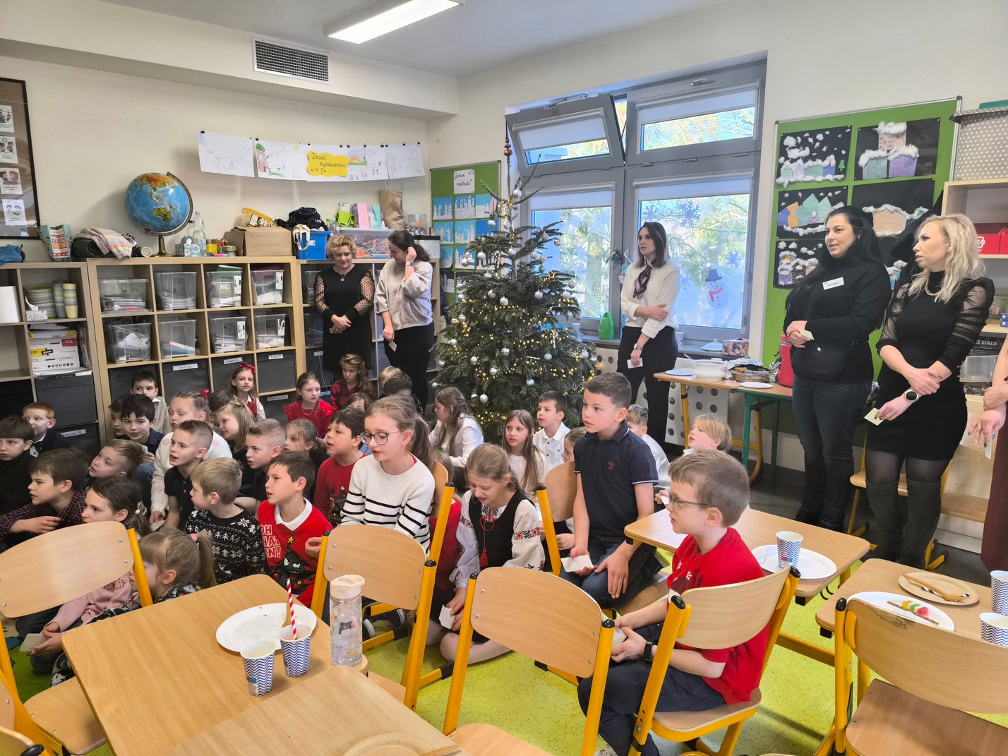 Było to tradycyjne, przedświąteczne spotkanie w szkole, które integruje uczniów i nauczycieli przy wspólnym stole, pełnym przekąsek. Na stole pojawił się barszczyk, pierogi, krokiety sałatka ciasta, owoce oraz napoje, z elementami zabawy (gry, dekoracje, piosenki) tworząc luźniejszą, świąteczną atmosferę z dala od lekcji. Dzieci wspólnie połamały się opłatkiem i zaśpiewały kolędy.