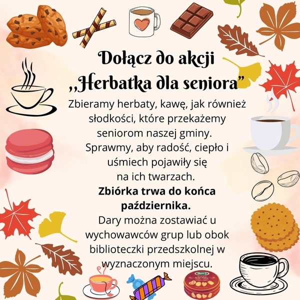 04 października 2024 Komunikaty Przedszkole w Żółwinie Herbatka dla seniora Zapraszamy - dołączcie do akcji ,,Herbatka dla seniora"! Czytaj więcej